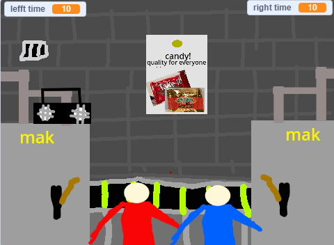 CONTROLS -- F, makes the left guy pull the lever. G, does the same for the right guy